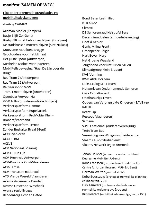 Ons Manifest: "Samen op weg naar een MOBIEL Vlaanderen"